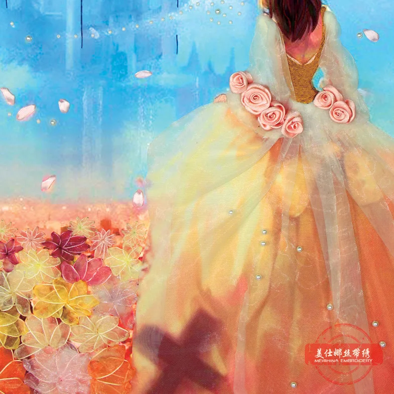 ORIGINAL DIY Ribbon Embroidery Beautiful Princess Paintings Beadwork Needlework Crafts Cross Stitch Kits Wal