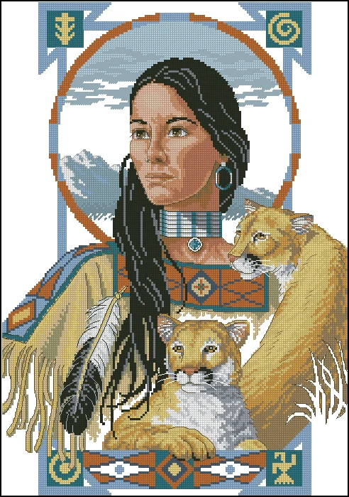 COTTON Beautiful Lovely Counted Cross Stitch Kit Noble Reflections Indian Lady Woman Girl and Leopa